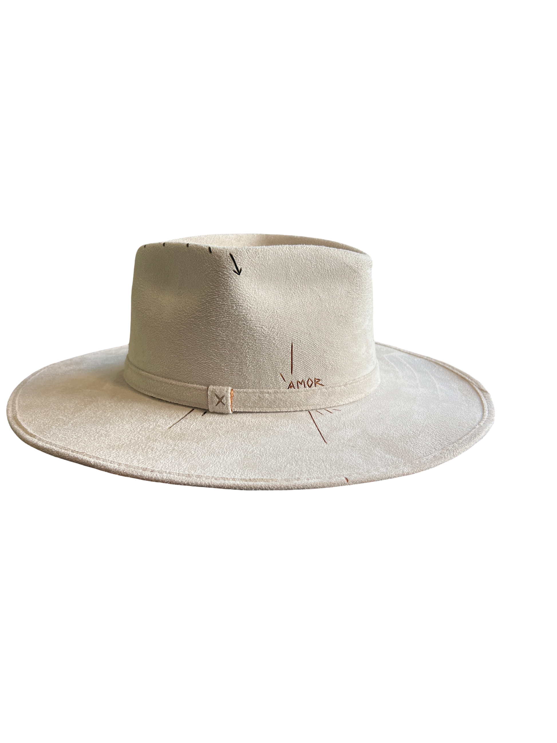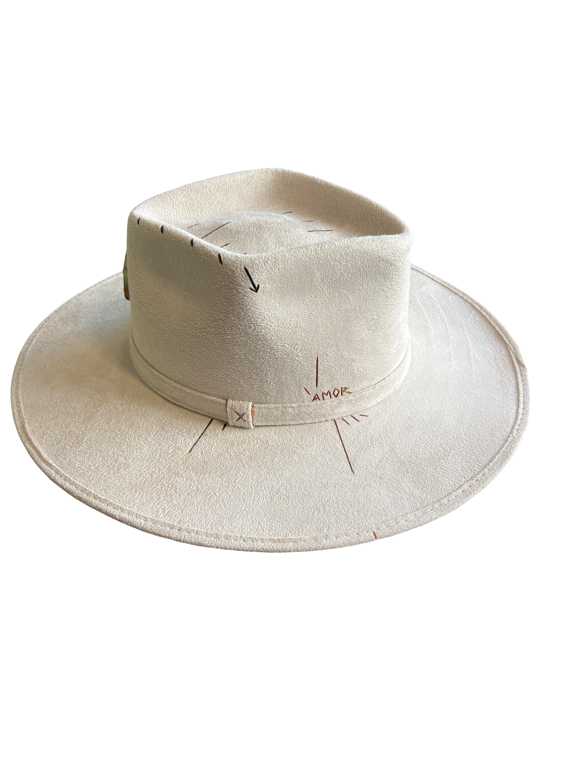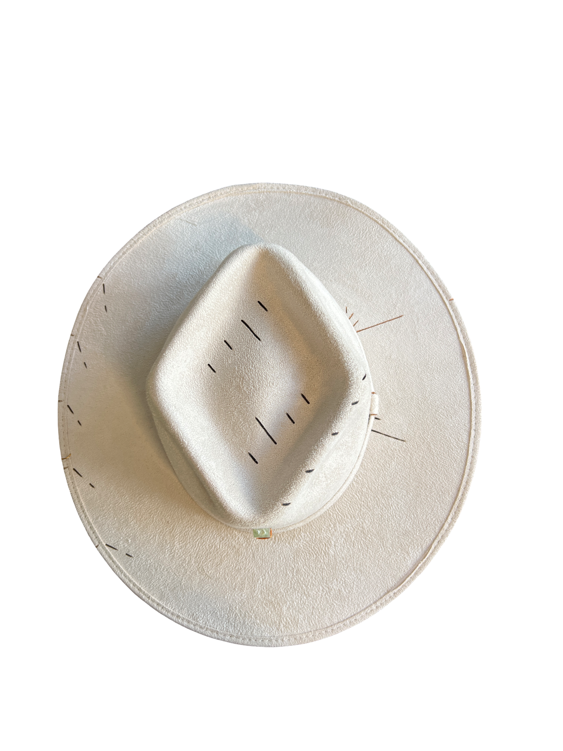 Sombrero de gamuza modelo rombo, color blanco marfil, cristal de cuarzo Prehnite, pintados a mano