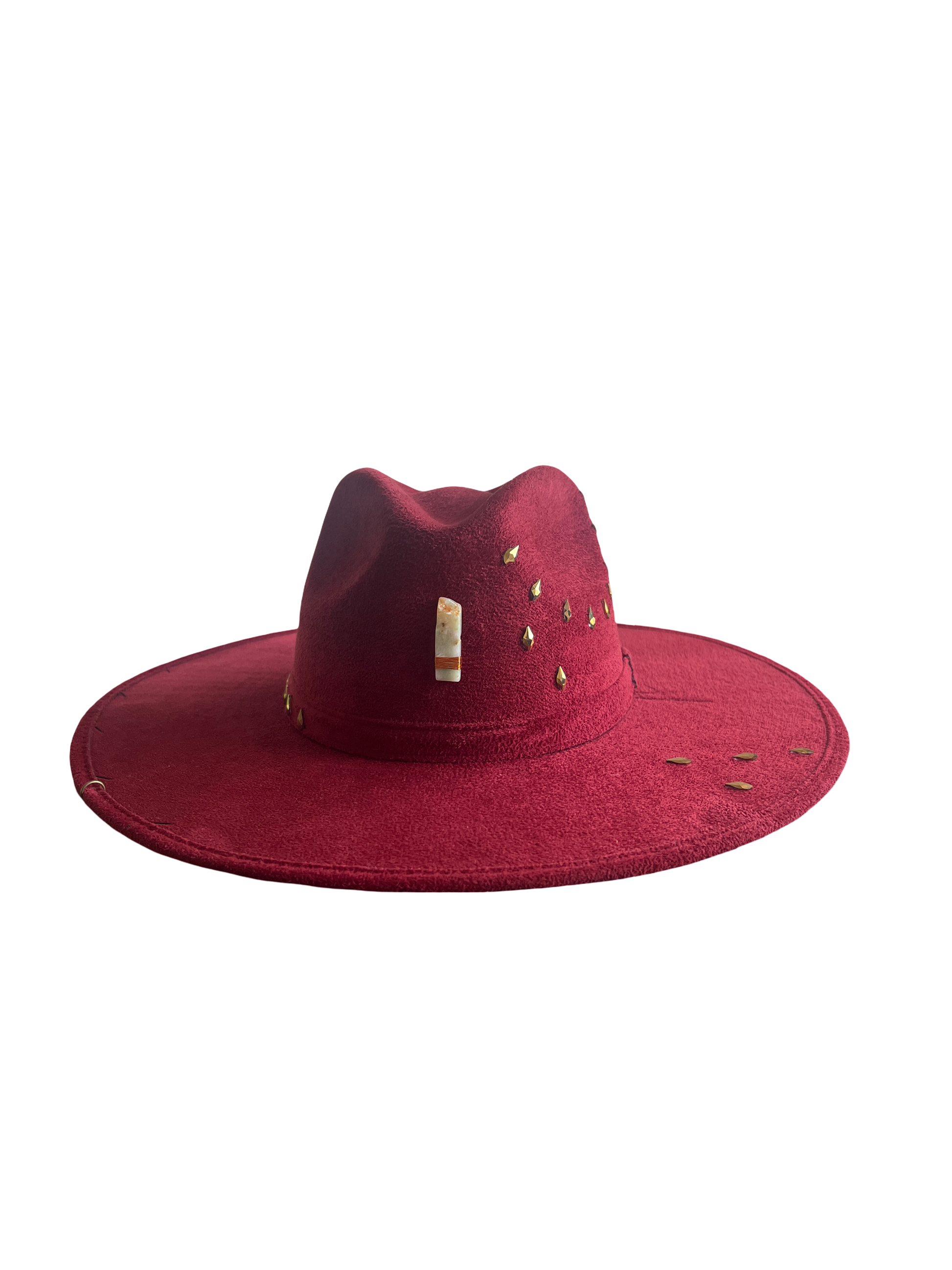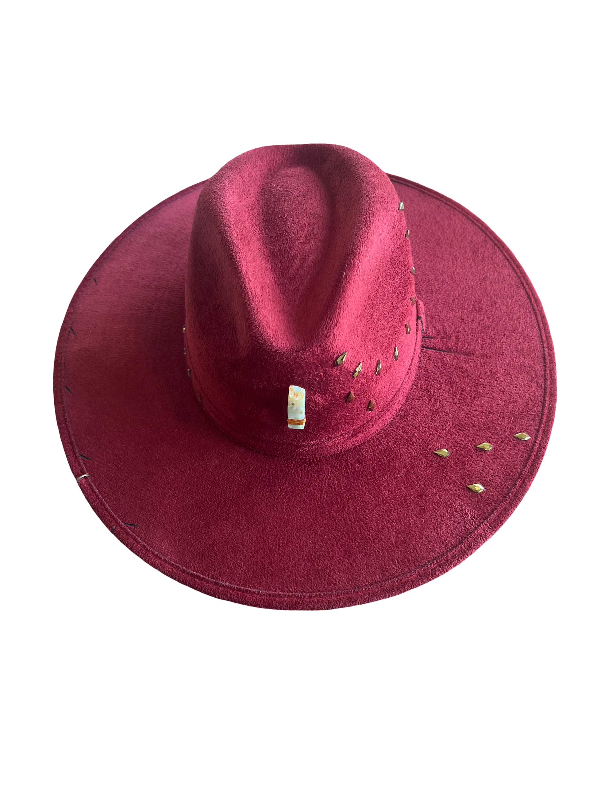 Sombrero de gamuza fina y ligera, cristal de cuarzo natural Amazonita, cristales gota de agua dorados