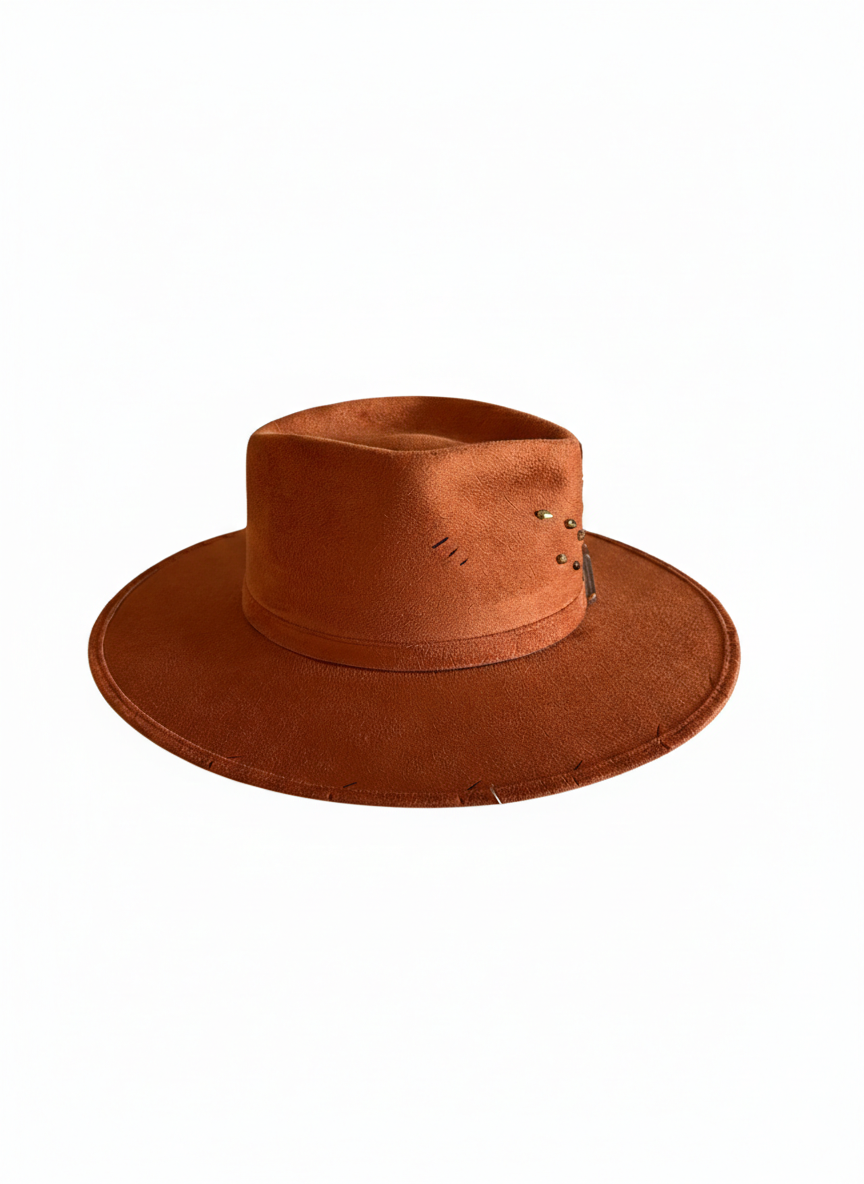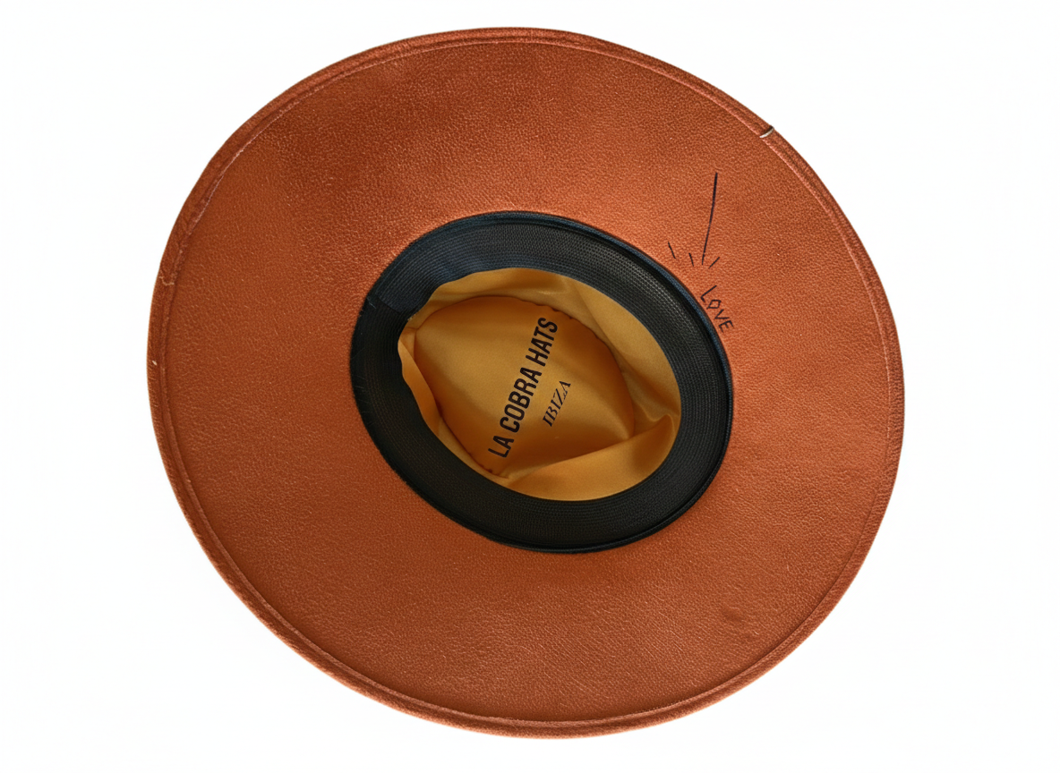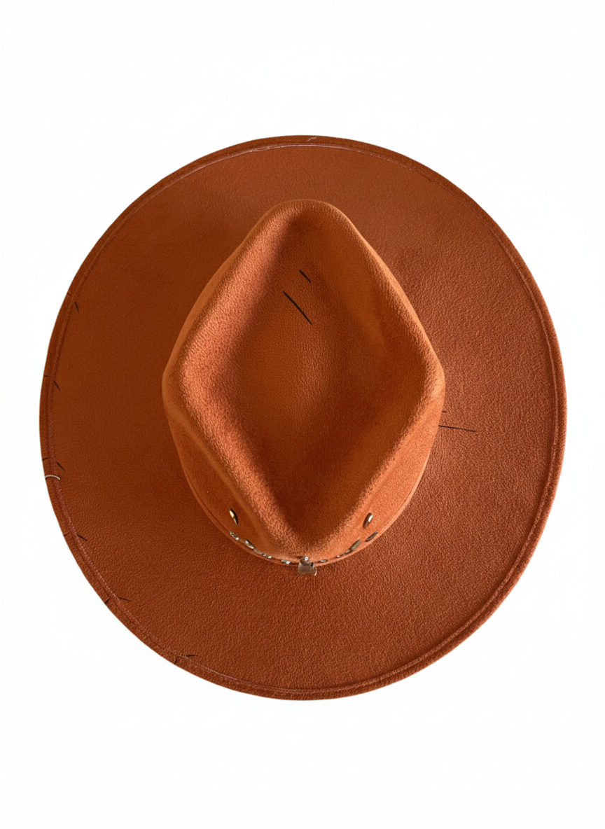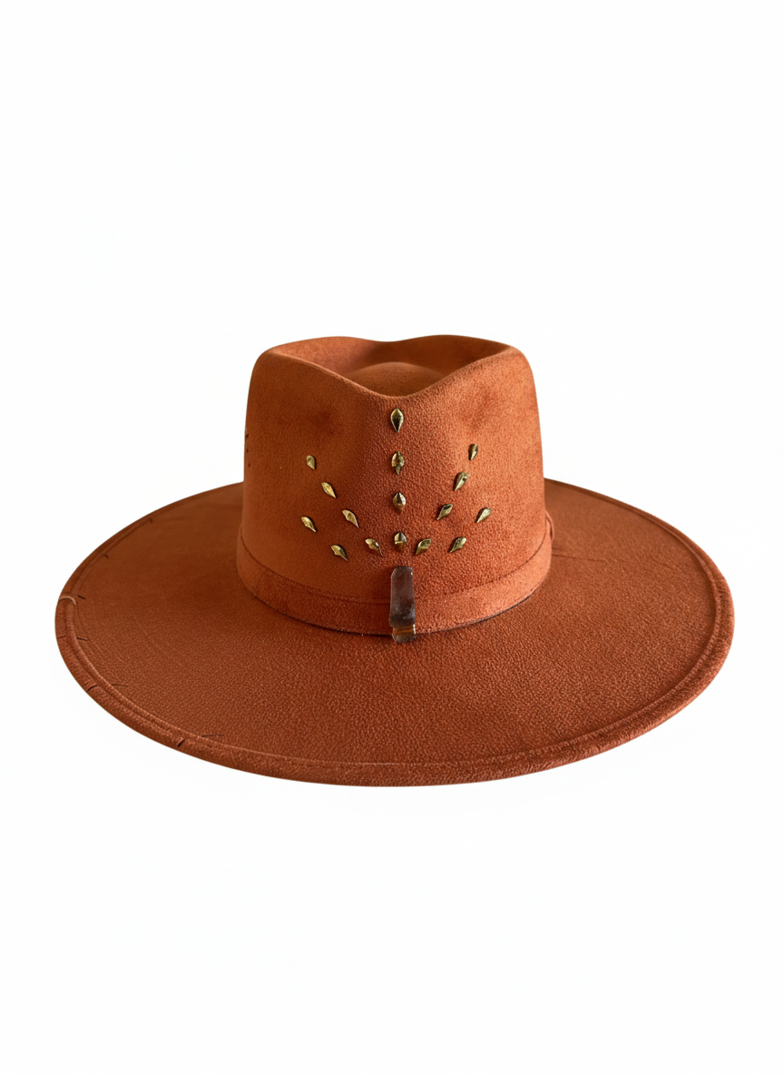Sombrero copa rombo naranja, con cristales dorados, cuarzo natural Smoky