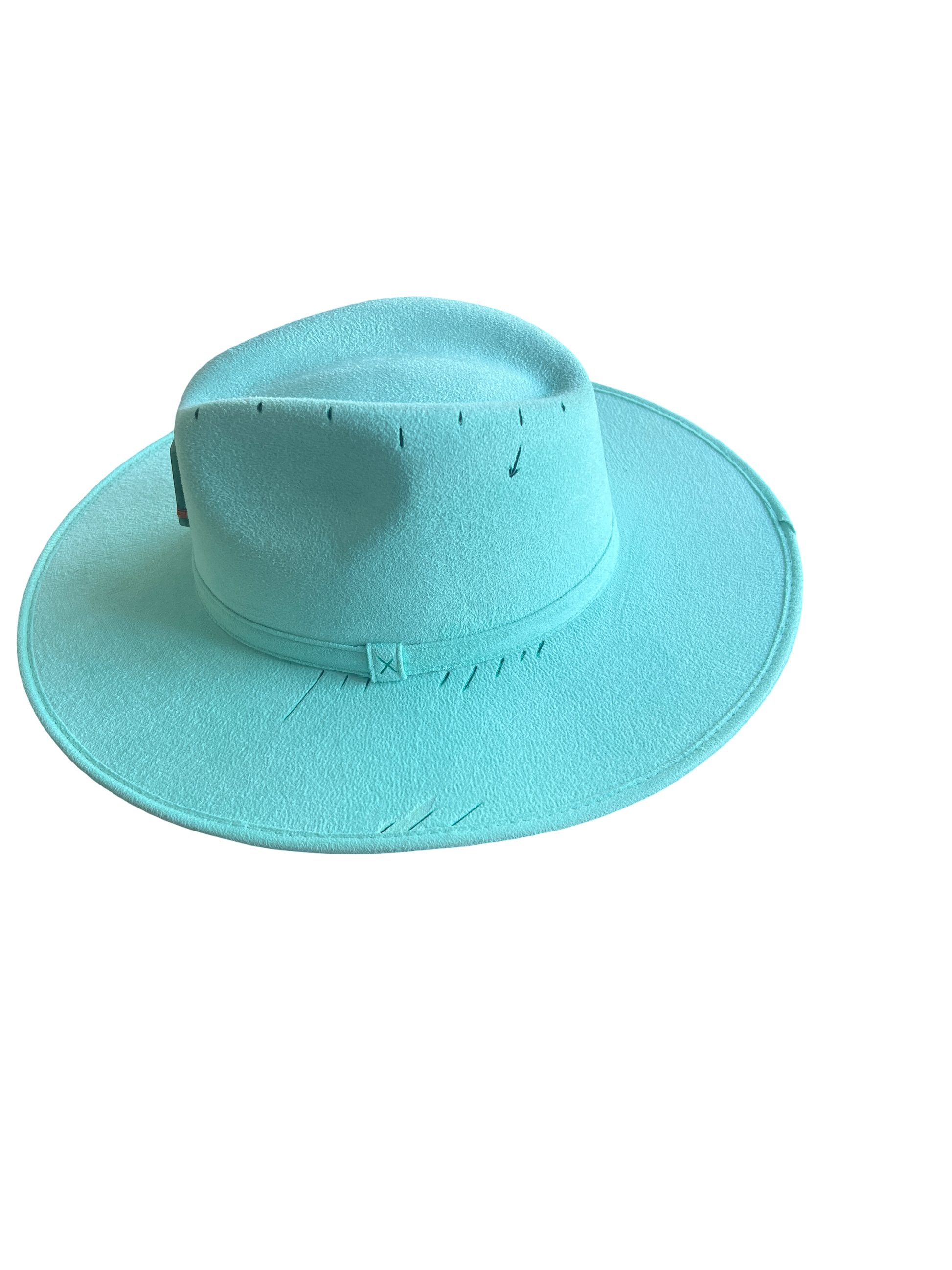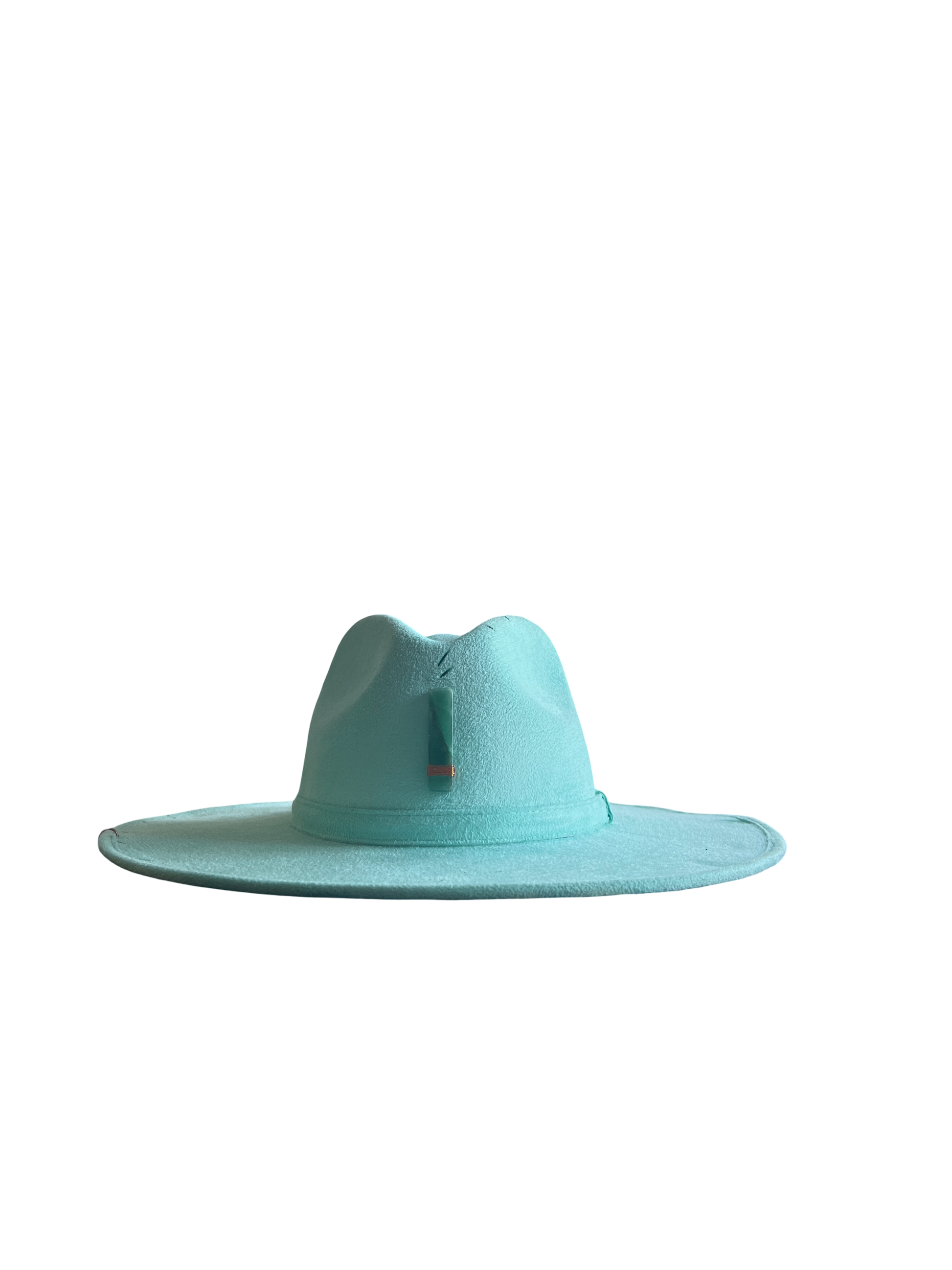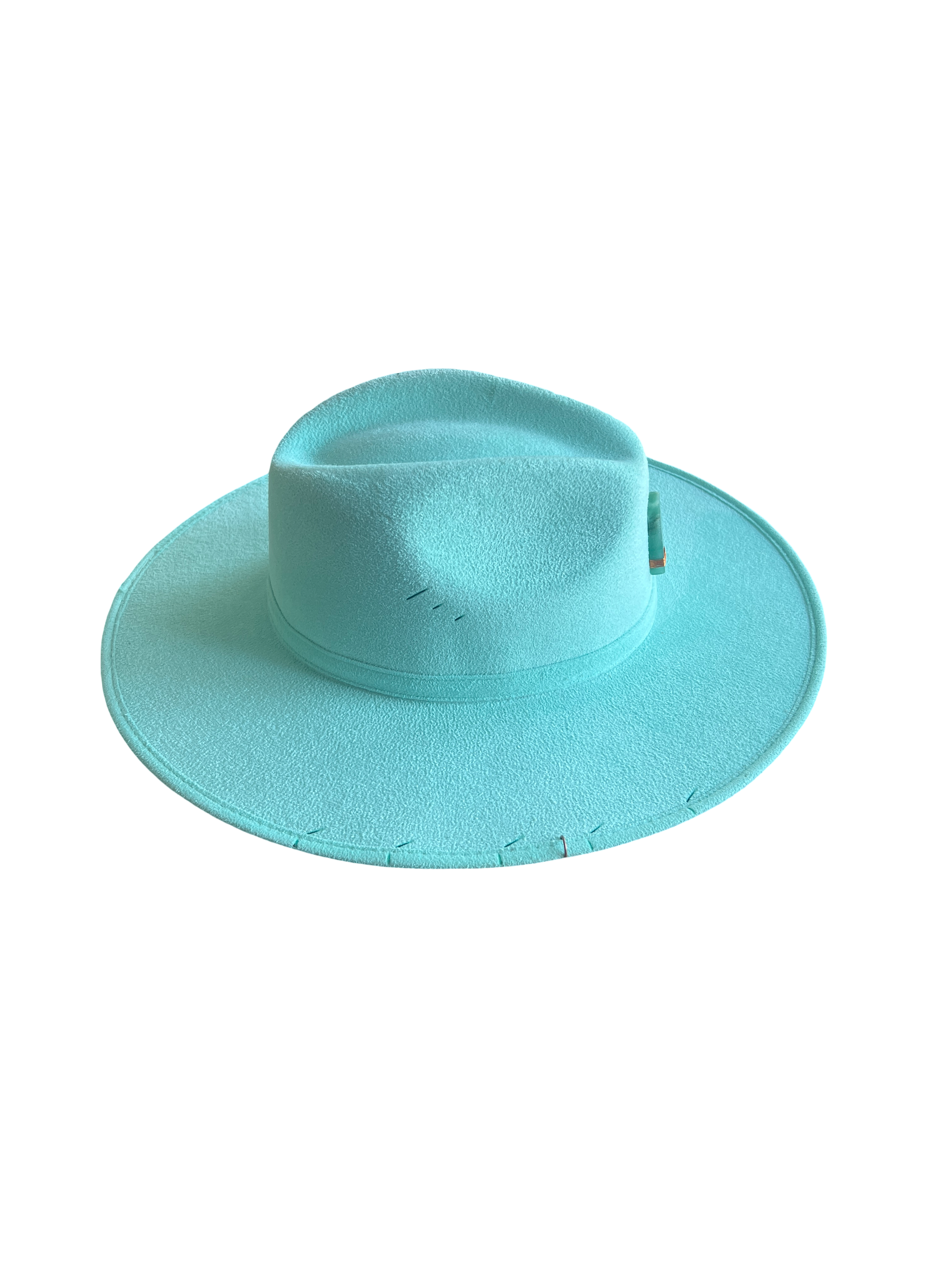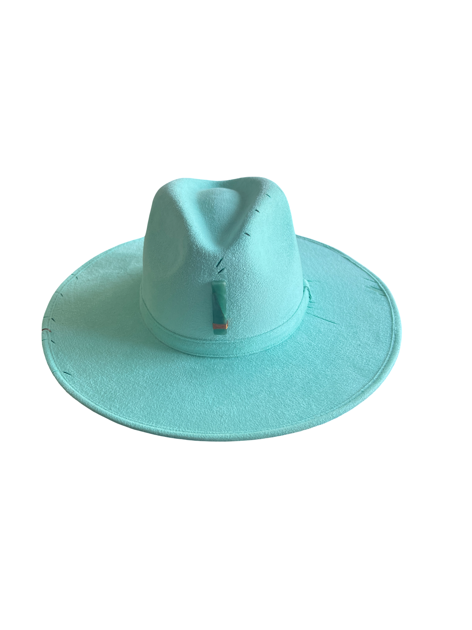 Sombrero de gamuza fina y ligera, color azul turquesa, cuarzo natural Aventurina verde